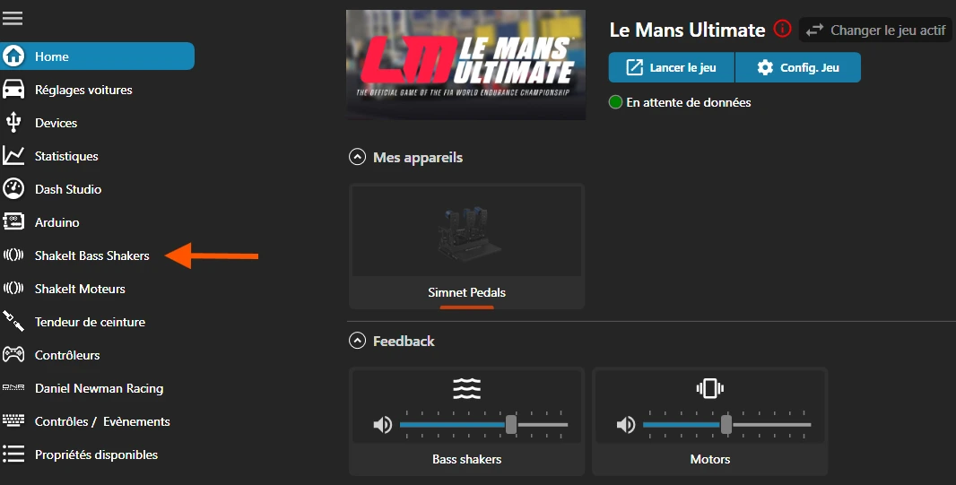 · Module ShakeIt Bass Shaker activé dans SimHub