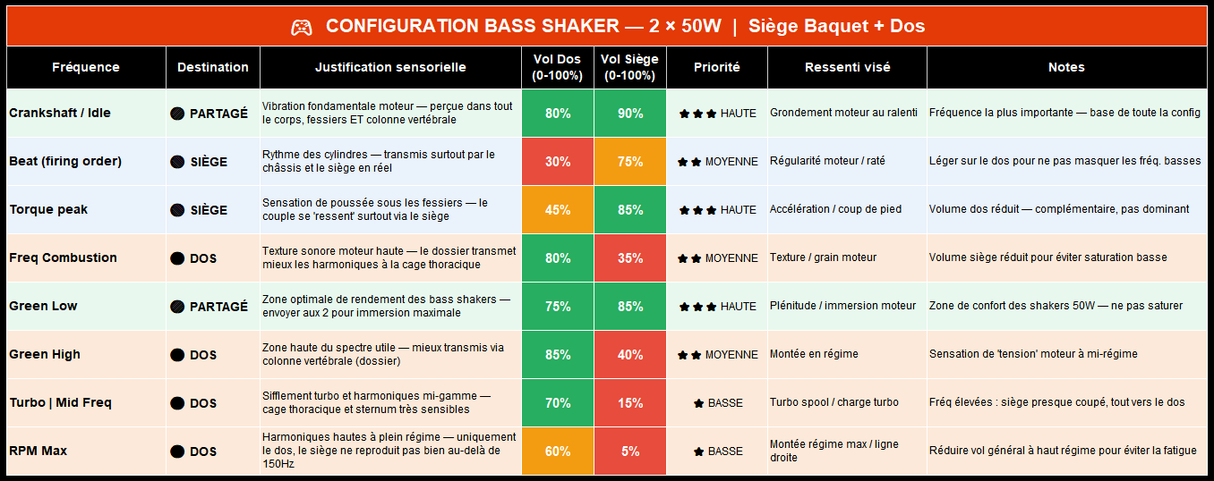 Note importante : Un second bass shaker installé sous l'assise du siège permet de décupler les sensations et d'exploiter tout le potentiel des profils développés.